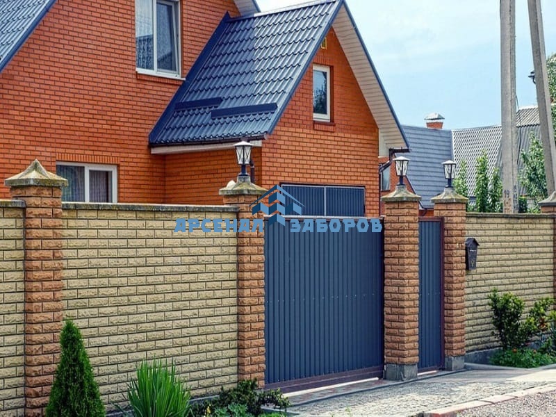 Фото работ - кирпичный забор с камнем